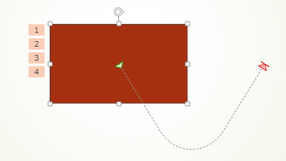- 破線の矢印でアニメーションの軌跡が表示されました。