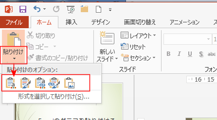 | スライドにExcelで作成したグラフを貼り付ける | 貼り付け方法の種類について |
