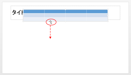 表の枠部分をポイントして、下図の状態で適切な位置へ移動します。