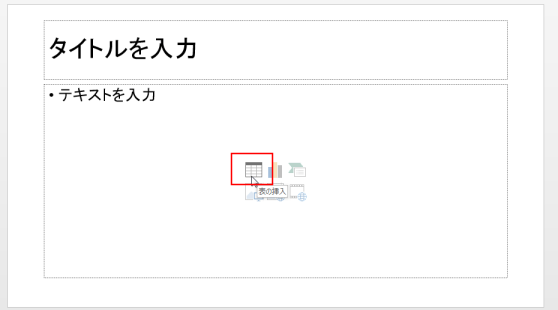 - コンテンツを含むスライドから表を挿入します。