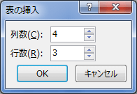 列数と行数を入力して、[OK]ボタンをクリックします。