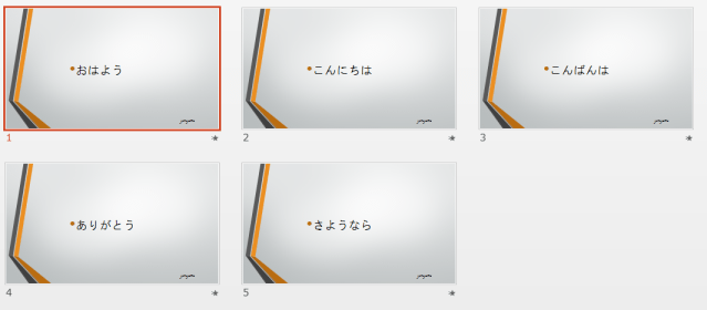 - 5枚目も同様に、5つ目の段落のみを選択して、アニメーション効果を設定します。