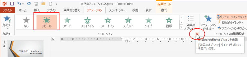 アニメーショングループのダイアログボックス起動ツールをクリックします。
