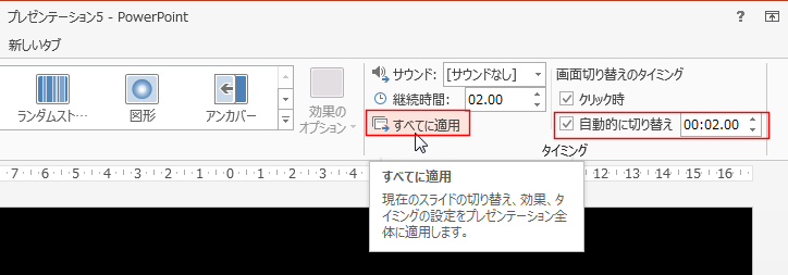 [すべてに適用]ボタンをクリックして、すべてのスライドを自動的に切り替えられるように設定します。