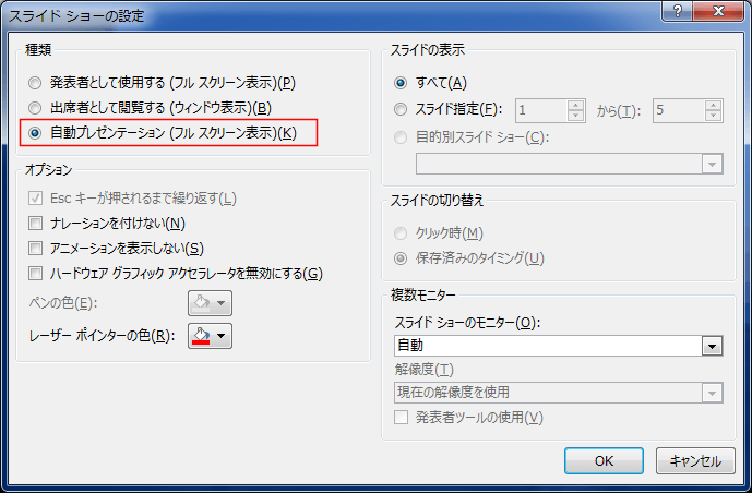 - 「自動プレゼンテーション(フルスクリーン表示)」を選択します。