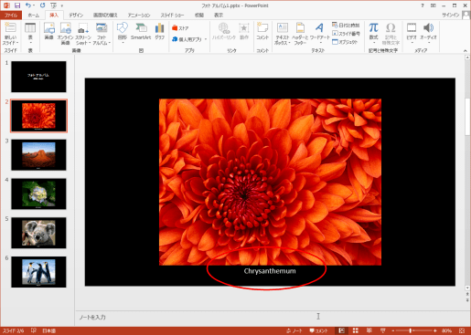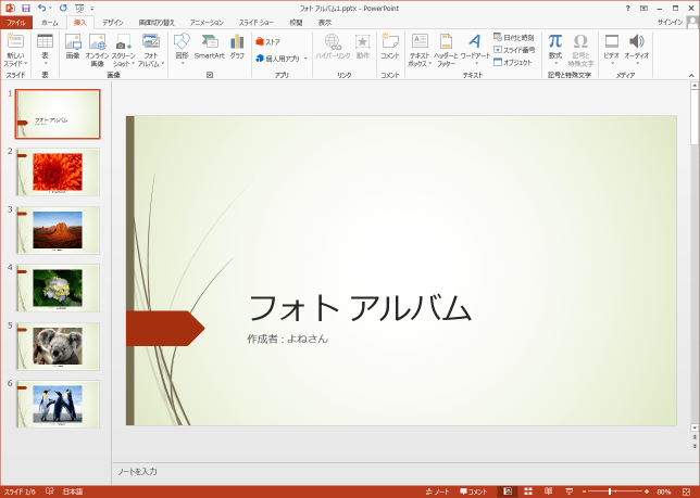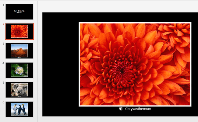 - PowerPoint2013を使って、フォトアルバムを作成します。