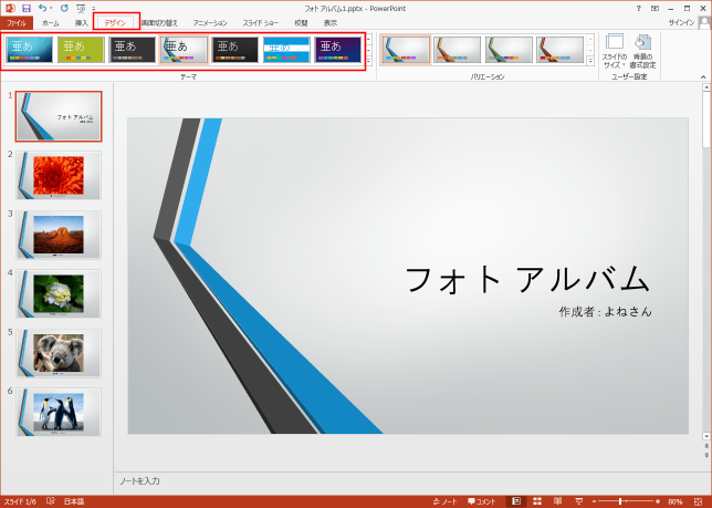 よねさんのExcelとWordの使い方|PowerPoint2013基本講座:目次|フォトアルバムを編集する