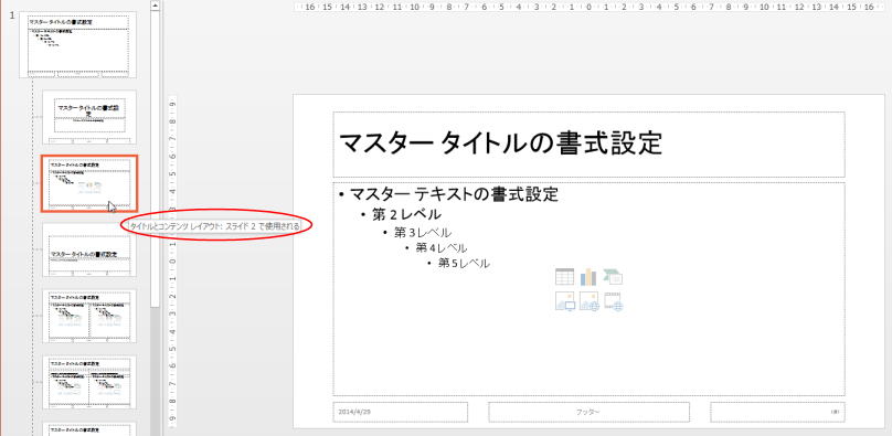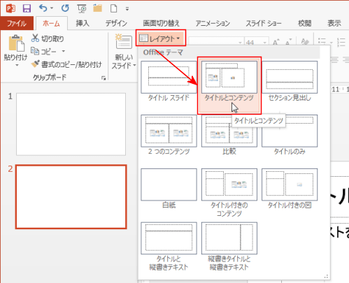 使用中のスライドレイアウトを選択します。