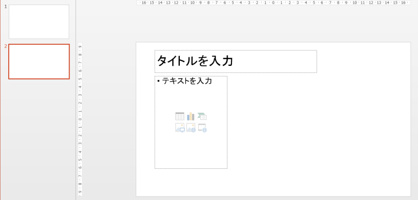 すると、変更したレイアウトが表示されますのでクリックします。ここの例では「タイトルとコンテンツ」になります。