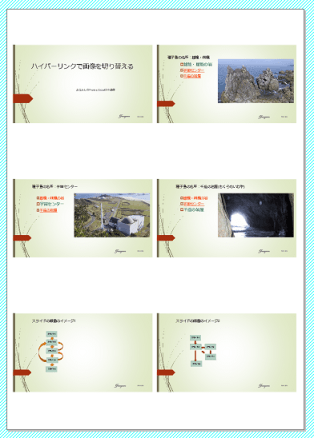 - このページでは、配布資料としてスライドを複数枚割り付け印刷するときに、スライドを大きく印刷する方法です。