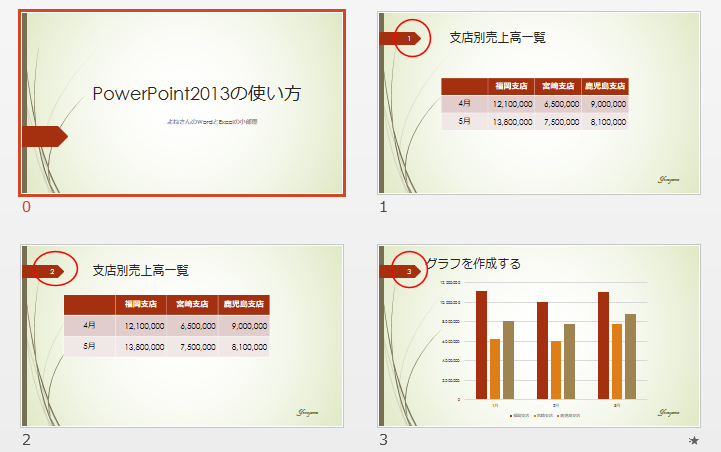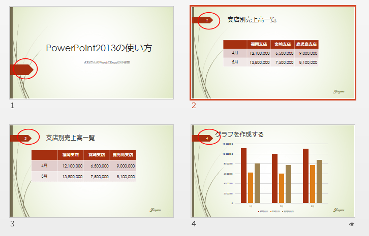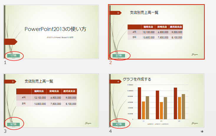 よねさんのExcelとWordの使い方|PowerPoint2013基本講座:目次|スライド番号を2枚目から開始したい