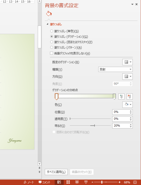 - PowerPoint2013でスライドのスライドの背景の書式設定について書いてみます。
