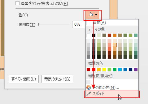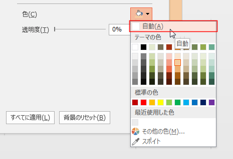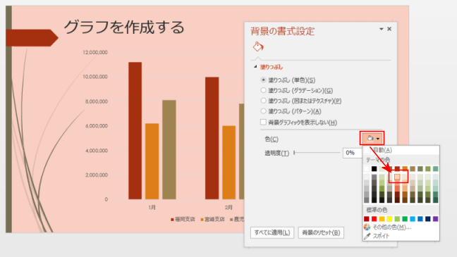 [色]ボタンをクリックして、カラーパレットから選択することができます。