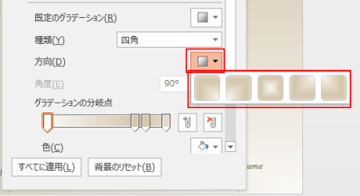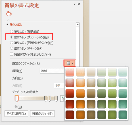 - 既定のグラデーションでは使用しているテーマに応じた色から選択することができます。