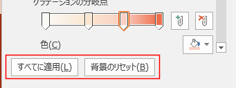 - 変更した書式は下にある「すべてに適用」ボタンをクリックすると、すべてのスライドに変更が適用されます。