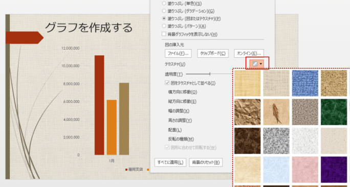 - 背景を図やテクスチャで塗りつぶすことができます。