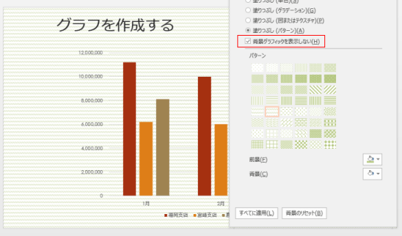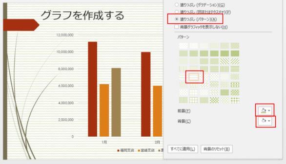 - 「塗りつぶし(パターン)」にチェックを入れます。