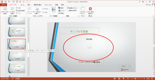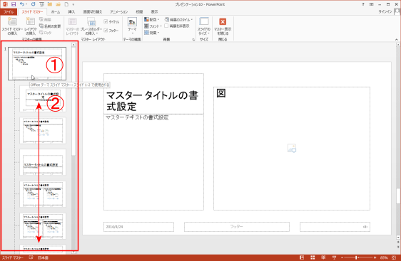 - PowerPoint2013でスライドマスターを利用して、統一感のあるスライドを作成します。