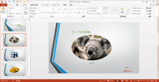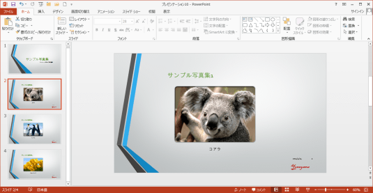 - PowerPoint2013を起動して、「新しいプレゼンテーション」を開きました。