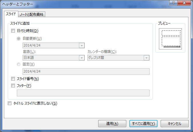 スライドにヘッダーやフッターを反映する方法について書いてみます。(2014/4/24)