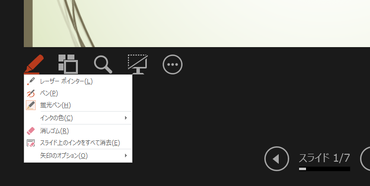 - 発表者ツールではペンや蛍光ペンなどを利用することができます。