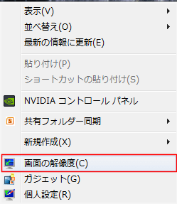 - デスクトップで右クリックして、[画面の解像度]を選択します。