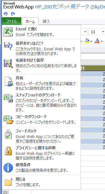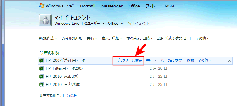 Excel2010とWord2010の使い方|Excel Web Appについて:目次|Web版Excel2010(Excel Web App)について