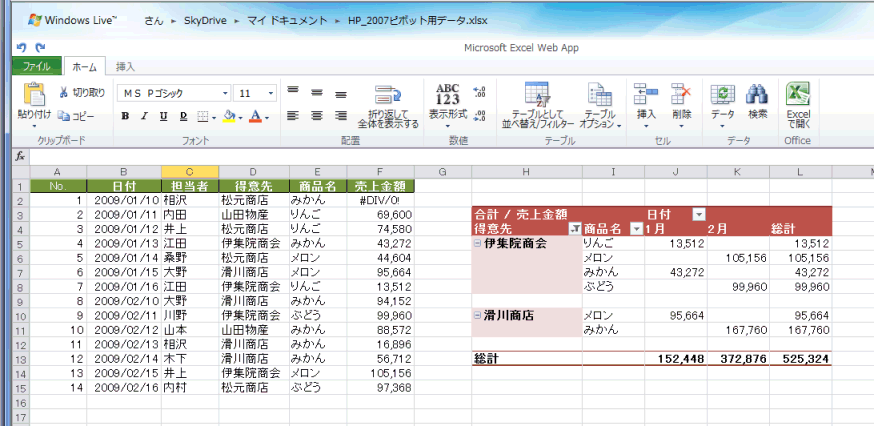 - 「HP_2007ピボット用データ.xlsx」が開きました。これで編集可能です。