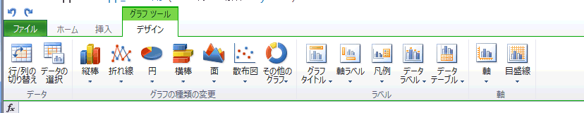 - 作成したグラフを選択すると、グラフツール タブが表示されます。