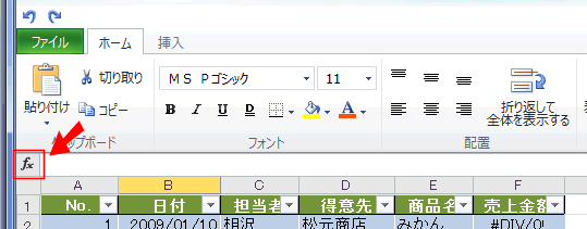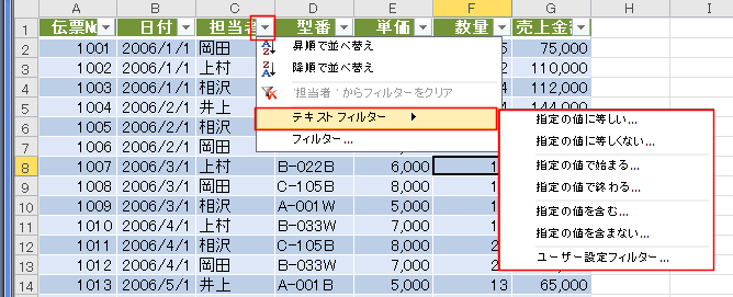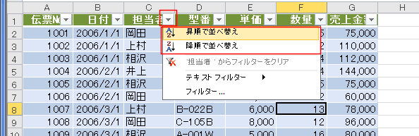 列見出しの▼ボタンから昇順/降順で並べ替えができます。