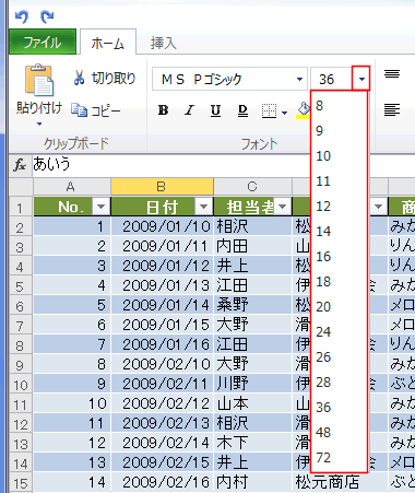 フォントサイズは表示されるサイズのみで、直接「30」と入力しても、近いサイズの「36」になります。