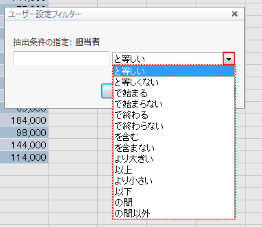 ユーザー設定フィルターは1条件で抽出ができます。