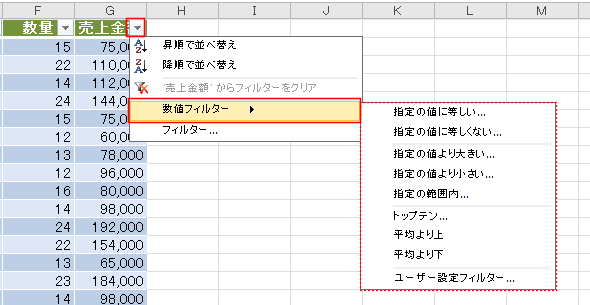 数値フィルター