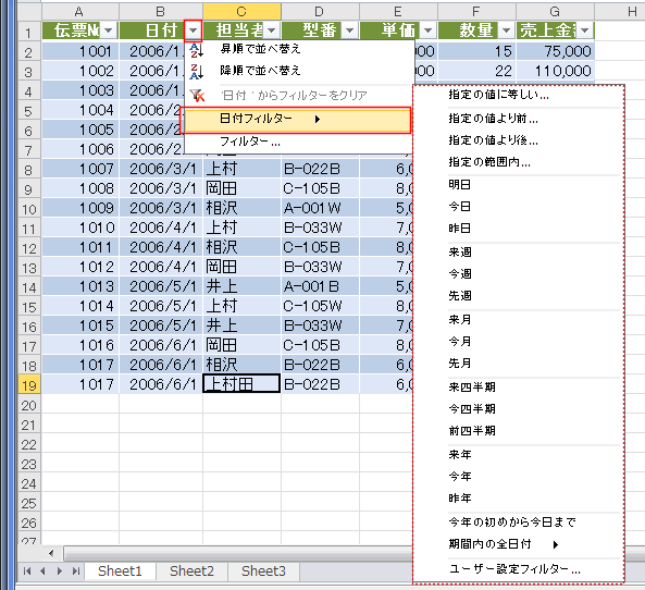 日付フィルター