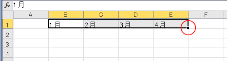 選択セルの右下にフィルハンドルがあります。