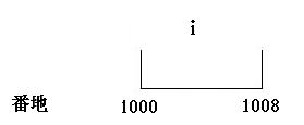 例えば、メモリーの番地の1000から1004をiのメモリー領域にあてるのです。