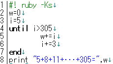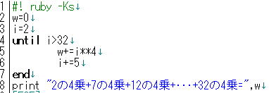 print "2の4乗+7の4乗+12の4乗+・・・+32の4乗=",w
