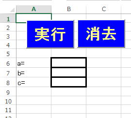 そして、エクセルのシートのB6からB8に値を入れて実行ボタンを押すと、