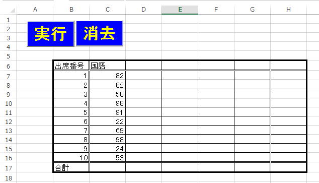 Cells(6, 2) = "出席番号"