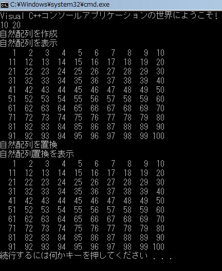 さらに、自然配列とその置換をコンソールに表示させるプログラムを考えてください。