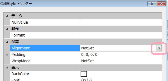 表示が出てきたら、DataGridViewCellStyleをクリックしてください。