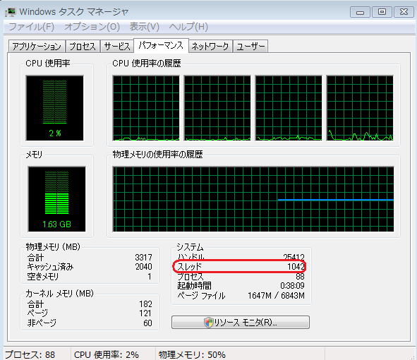 何もしていない状態でも約千ほどのスレッドが働いています。