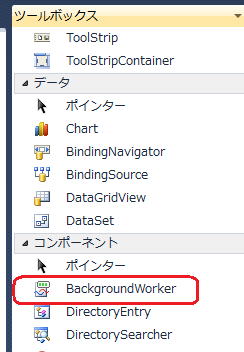 BackgroundWorkerを追加するには、ツールボックスの