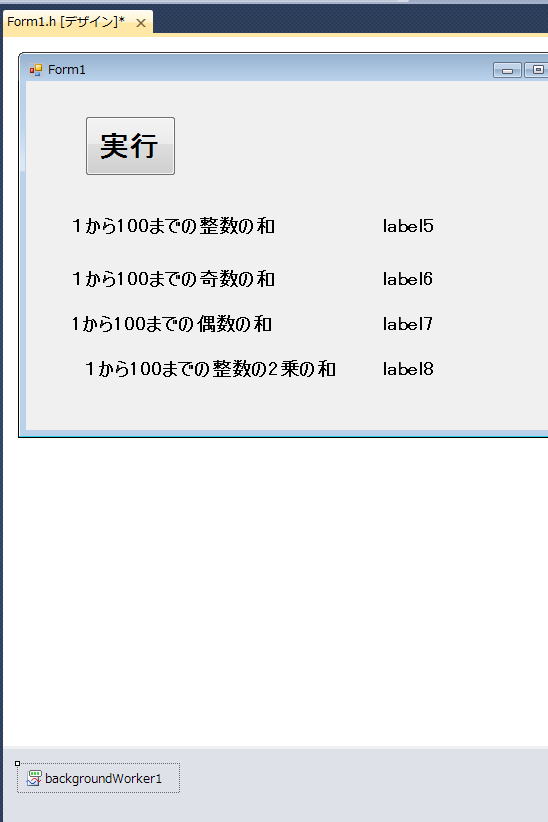 backgroundWorker1が働き出します。次にデザインに戻り、