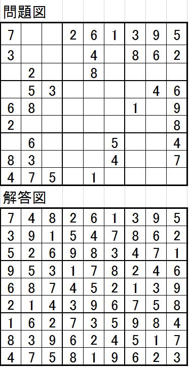 私が開発した数独問題作成ソフトVer7がつくった問題例とその解答を掲載してから、数独とは何か説明しましょう。