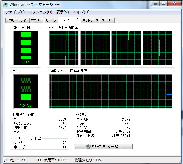 とCPU使用率100%が実現できていることがわかります。