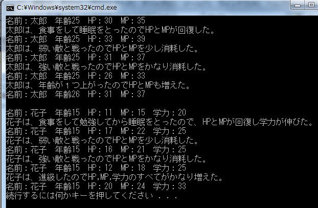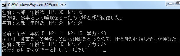 HP:"<<hanako.hp<<" MP:"<<hanako.mp<<"