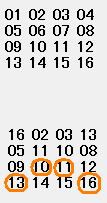 if(a[i][j]<10)w=w+L"0"+(a[i][j]).ToString()+L" ";